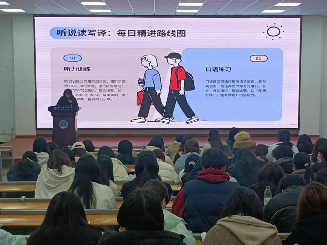学校原“灯塔优学”宣讲团成员、优秀毕业生、现就读于武汉大学英语笔译专业研究生的李佳琦同学为大家带来了以“坚持与突破”为主题的分享。她结合自己考研经历,从时间管理、资源整合、心态调整等方面分享了学习经验,她鼓励学弟学妹们勇于挑战自我,在专业学习、学科竞赛、社会实践等领域全面开花,实现从“被动学习”到“主动探索”的转变。