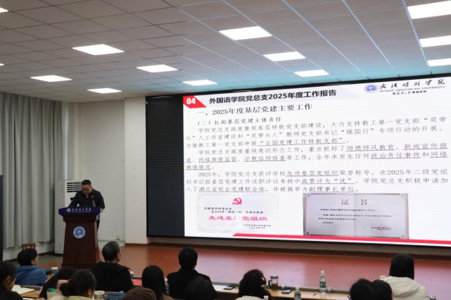 随后,教工第一党支部书记易静同志、教工第二党支部书记范云同志、学生党支部书记王银燕同志分别代表各自党支部做2025年度工作汇报。