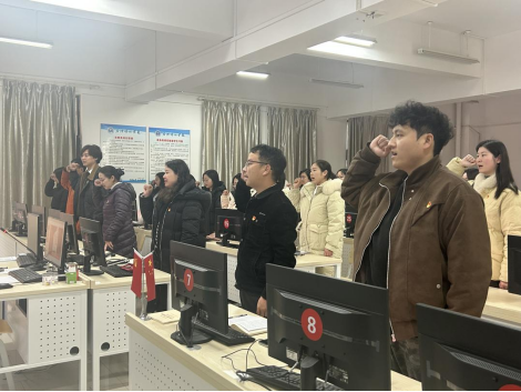 会议伊始,在易静书记的带领下,全体党员面向党旗,高举右拳,重温入党誓词。铿锵有力的誓言回荡在会场,激励着每一位党员牢记初心使命,坚定理想信念,永葆共产党员的政治本色。